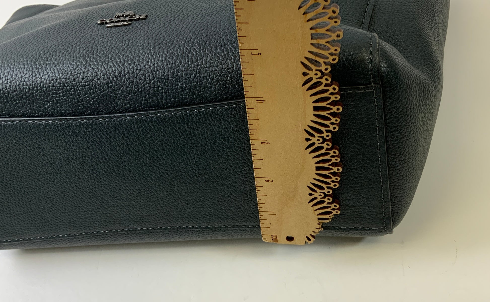Get carried away with this chic green Coach handbag. Perfect size for everyday use with designer flair. Add to cart now!