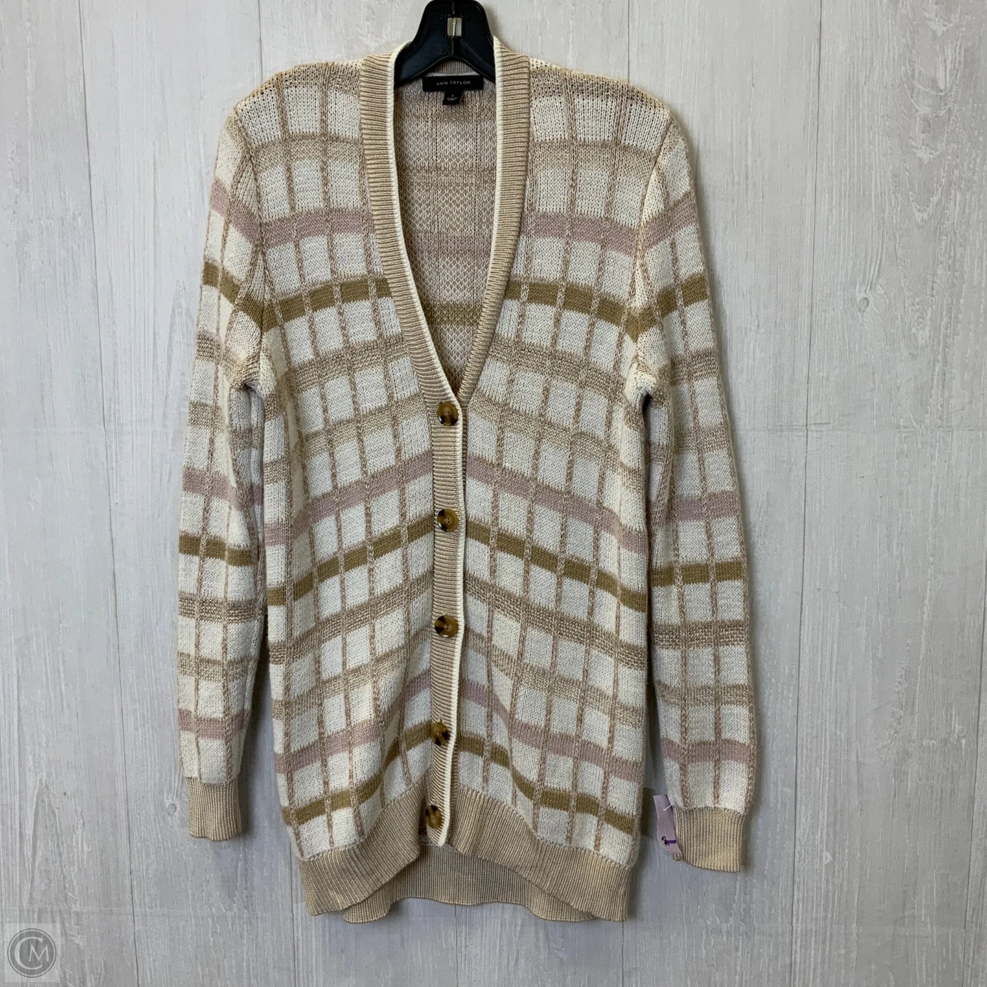 Sweater Cardigan By Ann Taylor In Cream & Tan, Size: S