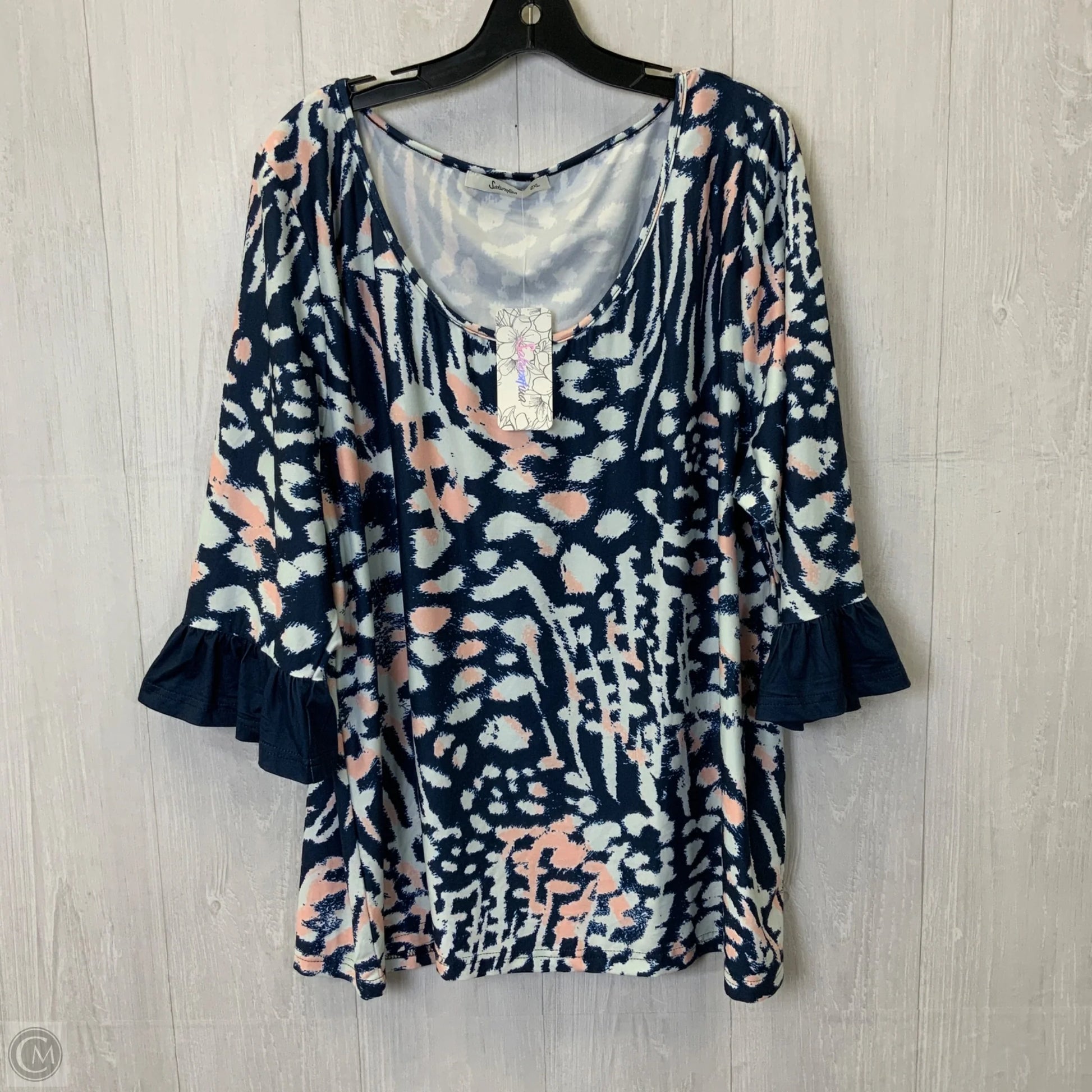 Top 3/4 Sleeve By Clothes Mentor In Blue & White, Size: 2x
