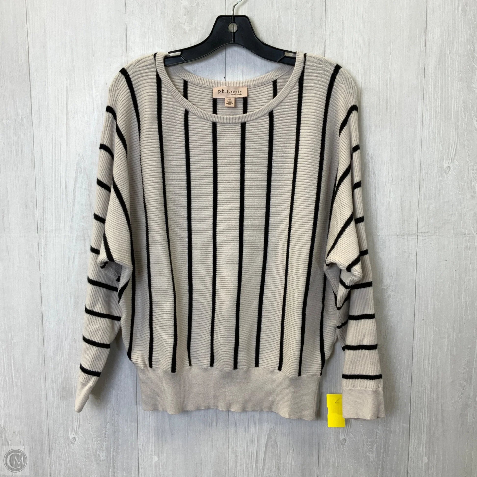 Top Long Sleeve By Philosophy In Black & Cream, Size: L