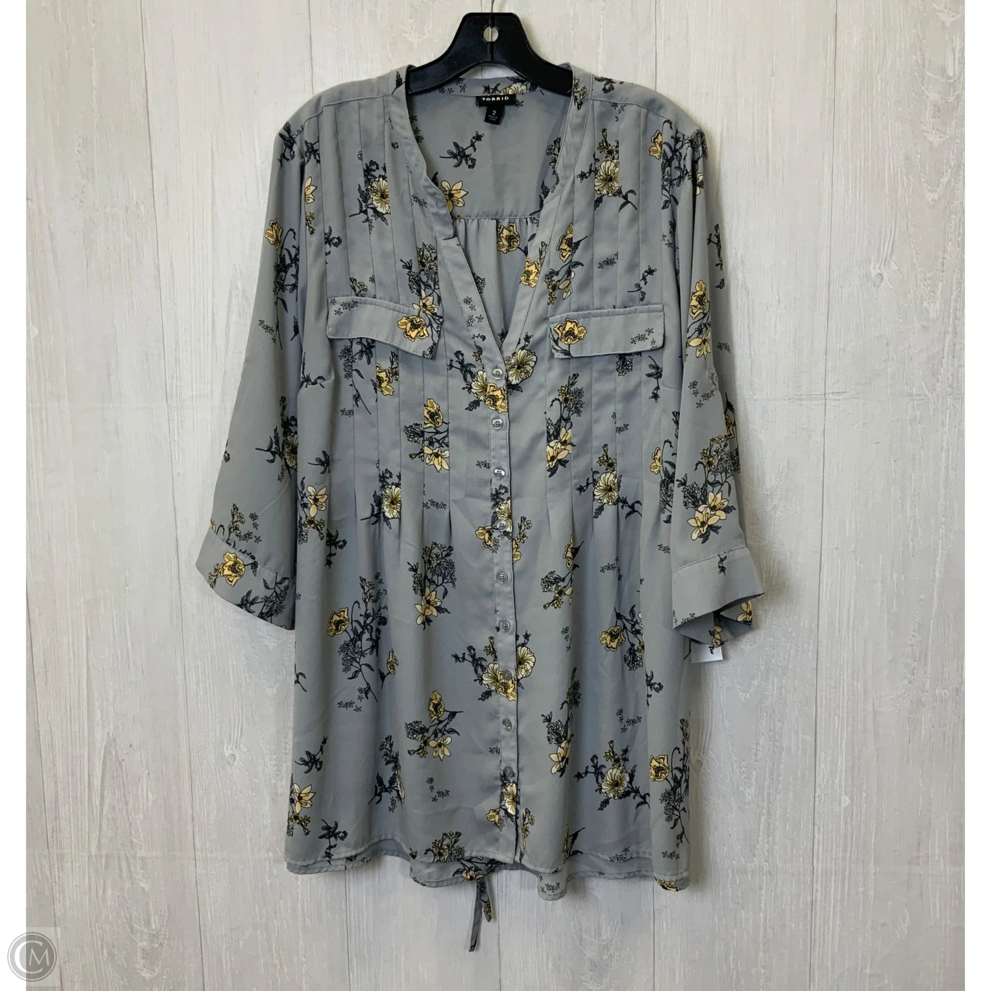 Top Long Sleeve By Torrid In Grey & Yellow, Size: 2x